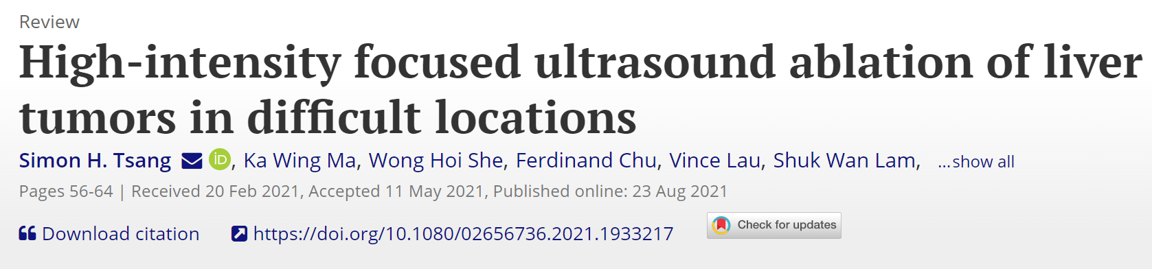 We are delighted to announce that the International Journal of Hyperthermia, the HIFU Special Issue (i.e. Volume 38, 2021), which was partially supported by ISMIVS, was officially released in September. The Special Issue includes 15 articles written and reviewed by world-renowned scholars and pioneers in minimally invasive and noninvasive medicine, elaborating on the status and prospects of the clinical applications of high intensity focused ultrasound on tumours that occurred in specific organs. We'll share the 15 articles included in the upcoming newsletters, stay tuned!