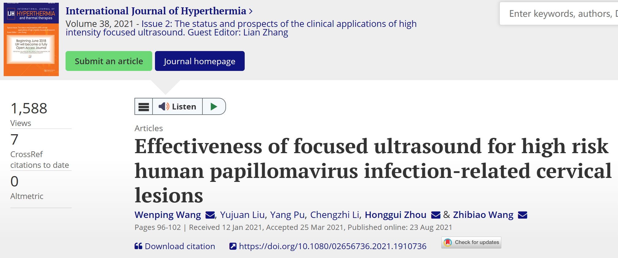 Effectiveness of focused ultrasound for high-risk human papillomavirus infection-related cervical lesions