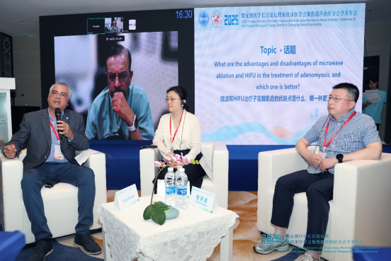 Professor Oliver Cruz from the Department of Obstetrics and Gynecology at the National Autonomous University of Mexico, Vice President Li Jingjing of Liuzhou Maternal and Child Health Hospital, and Professor Yang Hongbo, Director of Gynecology at Huai'an Maternal and Child Health Hospital, discussed the application of ablation techniques in adenomyosis, as well as postoperative fertility assessment and long-term management strategies.