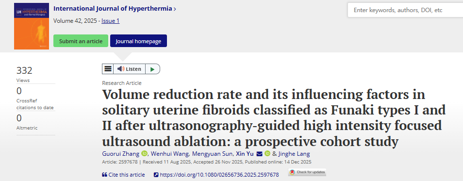 Volume reduction rate and its influencing factors in solitary uterine fibroids classified as Funaki types I and II after ultrasonography-guided high intensity focused ultrasound ablation: a prospective cohort study